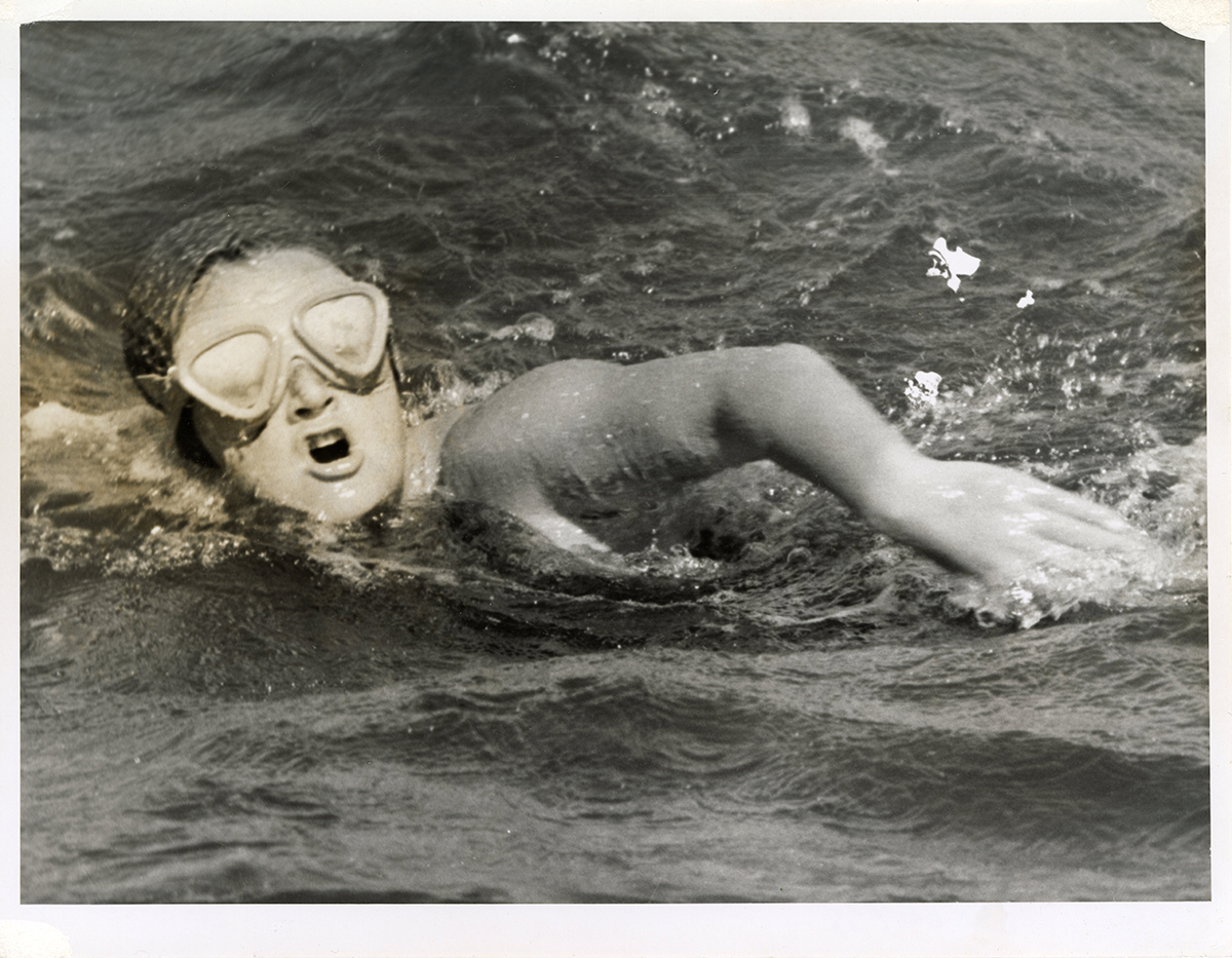 For the crossing, Lesley wore a pair of ‘Speedo’ racing bathers and goggles sourced from Jacky Sue in Subiaco at a time when such equipment was difficult to find. Her swim was documented in newspapers and short film footage, recognised as a significant moment in Western Australia’s open water swimming history. Some of these records are now held by the State Library of WA.