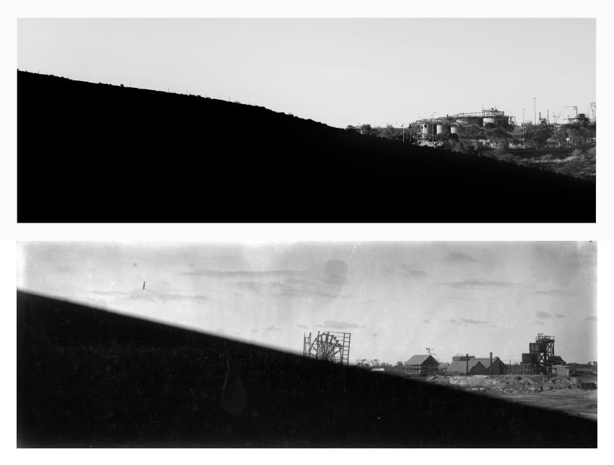 Time and Time Again: Rephotographing the Goldfields pairs historic photographs of Kalgoorlie and its surrounds, sourced from the Western Australian Museum’s Dwyer and MacKay Collection, with contemporary images of the same locations captured by Dicks a century later.